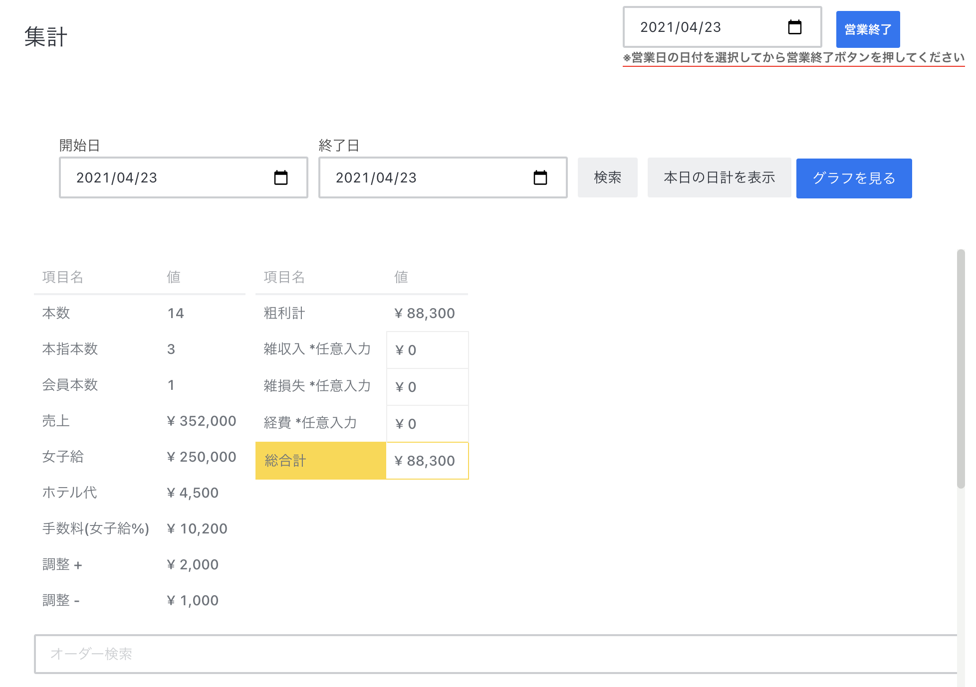 集計機能もまた、現場にいらっしゃれないオーナー様や日々タスクとして行う店長さんなど